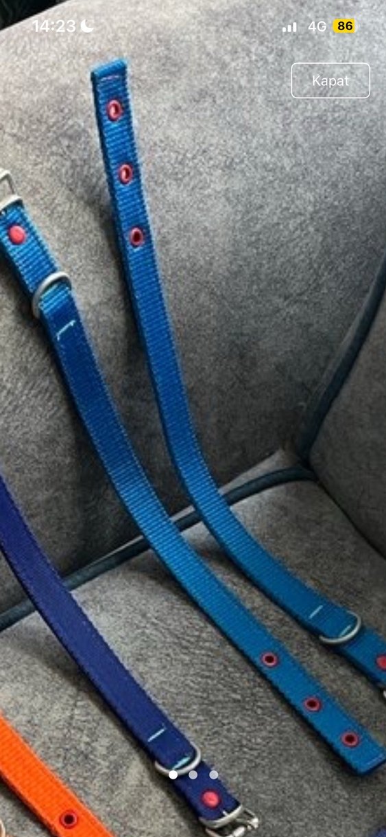 Dayanıklı malzemeden yapılmış, ayarlanabilir mavi köpek tasması, metal halkalar ve çoklu ayar deliklerine sahiptir. @MEHMET0505 2 adet