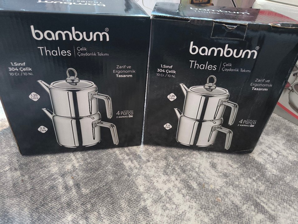 Bambum Thales çaydanlık takımı, 1. 18/10 çelikten, ergonomik ve zarif tasarıma sahiptir. 2 adet bambum Çelik kendisinden süzgeçli çaydanlık takımı 18/10 paslanmaz çeliktir kalın ağır kaliteli üründür alanlar çok .memnun kalıcak .