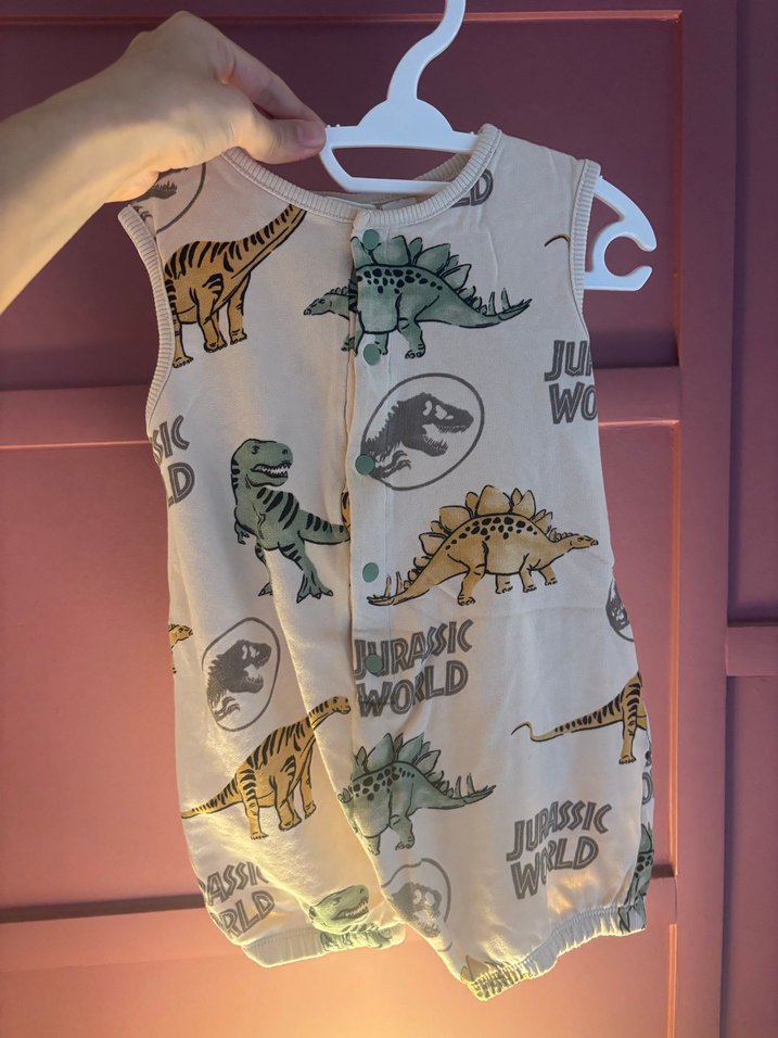 2 ADET Bebek Dinozor Desenli Fermuarlı Tulum