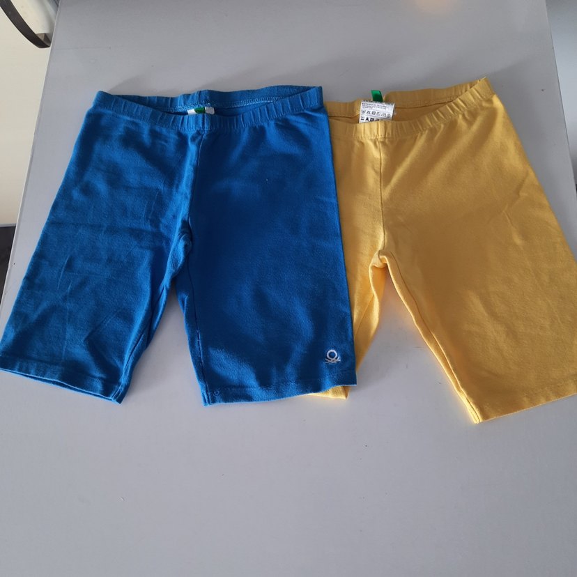 Orijinal benetton. 8-9 yaş. pamuklu tayt. sarı ve mavi renkte. ölçüler ilanda mevcut. kız çocuğu tarafından 1 sezon jimnastikte kullanıldı. küçük gelmesinden satılık. mavi olan, etiketi kesik, biraz daha sık kullanıldı. bacak dikişinde çok hafif bir açılma var. onun dışında ürünler tertemiz hatasız. kumaş likralı pamuk. 2 adet fiyatıdır.