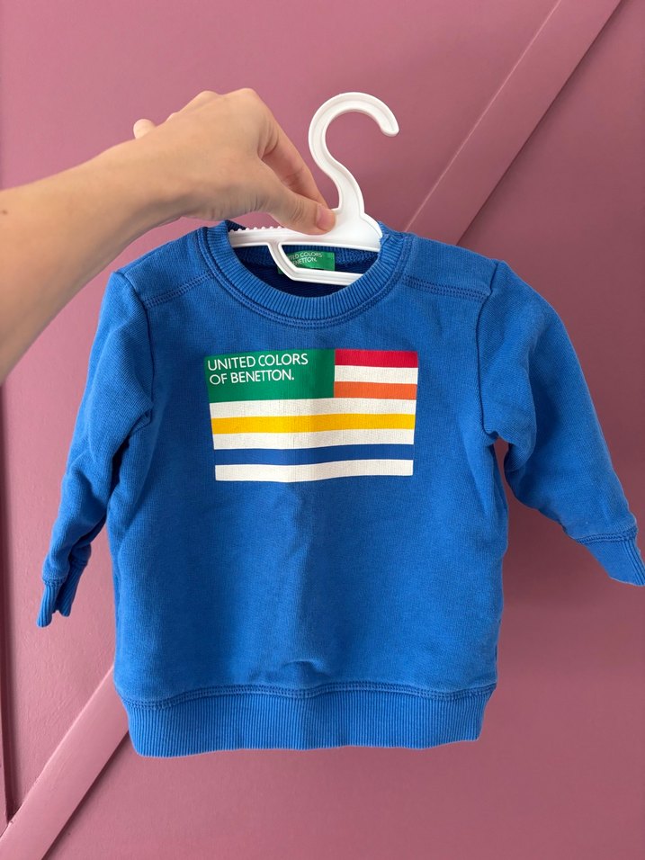 Erkek çocuklar için bisiklet yaka ve uzun kollu, rahat kesim sweatshirt. Yumuşak ve sıcak kumaştan, renkli çizgili United Colors of Benetton logosu ile. Lekesiz defosuz çok iyi durumdalar