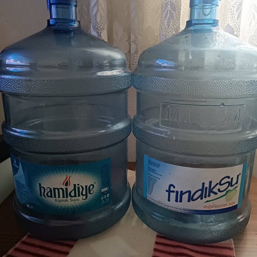 2 Adet fiyatıdır sağlamdır ama çizikler mevcuttur Mavi ve gri tonlarda, "Hamidiye" ve "Findik" markalı iki büyük su şişesi, içme suyu depolamak için uygun.