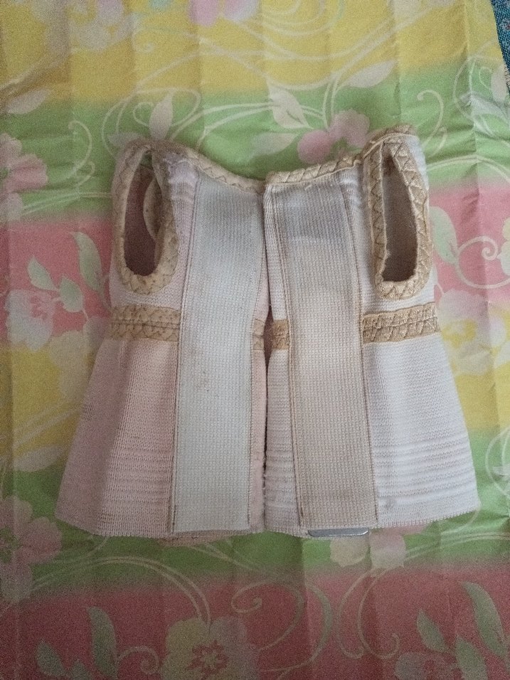ikisinin fiyatı. iç kısmında lekelenme olmuş. el bilek ateli bandajı. pembe ve beyaz renklerinde. ben bunları yıkattım diye hatırlıyorum, lekeler yıkanmadan sonra da çıkmamış.