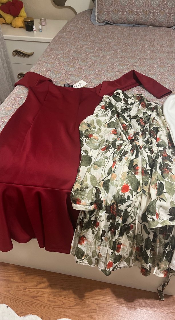 2 adet elbise 2 adet havuç kumuş pantolon pantonlar 38 beden elbiseler 36 beden kalbıpları geniş 38 olaral düşünün herhangi bi deformasyonu yok ihtiyaç fazlası