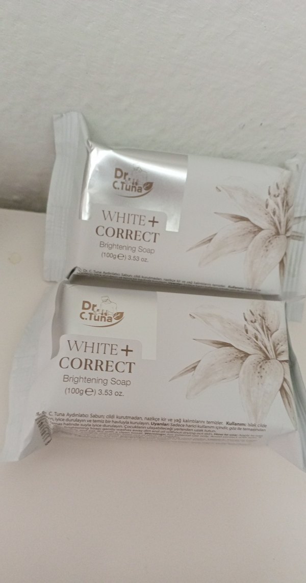 2 adet Farmasi Dr. Tuna White+ Correct Aydınlatıcı Sabun, cildi nazikçe temizler ve aydınlatmaya yardımcı olur. Her biri 100g ağırlığındadır.✨