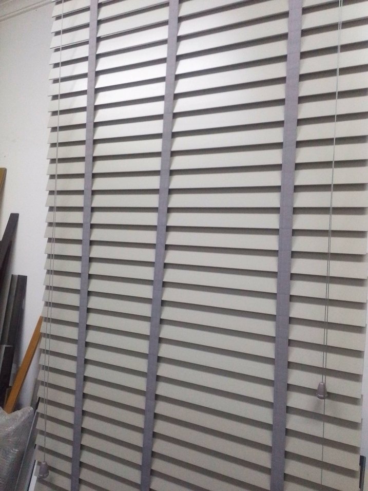 2 adet gri renk ahşap jaluzi