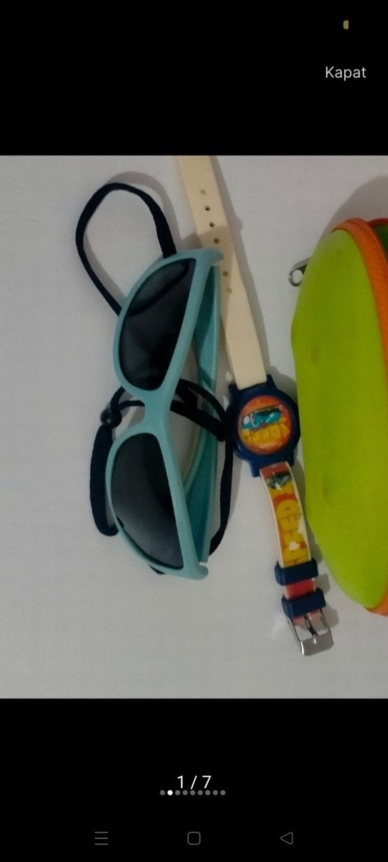 2 adet çocuk Güneş gözlüğü ve saat UV ışınlarına karşı dayanıklı sadece saatin pili yoktur diğer ürünlerde sorun yok Atasun optik