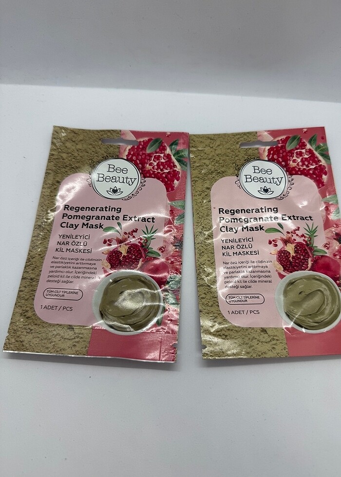 2 adet temizleyici nar özlü kil maskesi yüz için tüm cilt tiplerine uygundur son kullanma tarihi 07/09/2028 adeti 20 ml