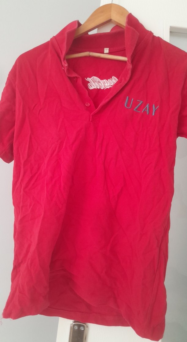 Kırmızı, yakalı ve kısa kollu erkek polo tişörtü, nefes alabilen keten kumaştan üretilmiştir. Bol kesim ve göğsünde "UZAY" nakışı ile renkli ve rahat sokak stili sunar.