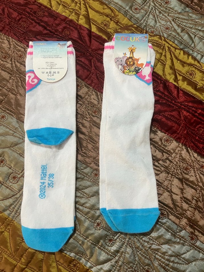 2 adet Kız Çocuk Beyaz Baskılı Çorap