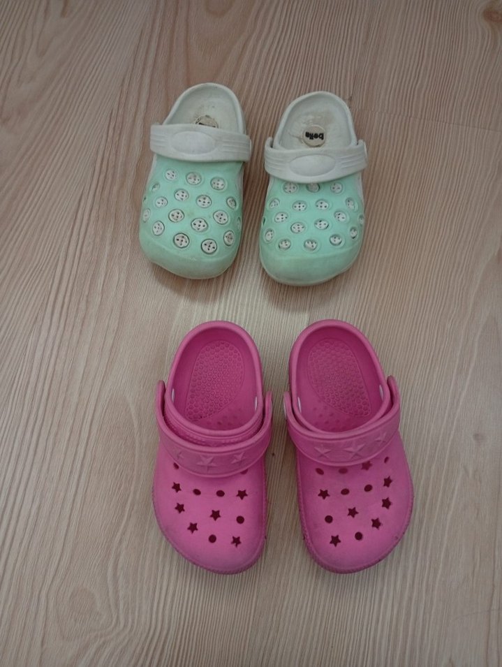 Pembe renkte, cırt cırtlı bantlı ve yıldız desenli deliklere sahip kız çocuk terliği, sade normcore tarzında Ürünler Çok Fazla Giyilmemiştir Temiz ve iyi durumdadır ikiside 22 - 23 Numaradır Alan kişiye Hayırlı Olsun