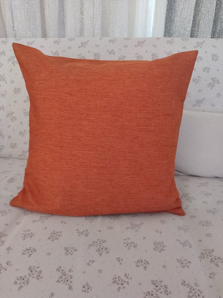 Modern ve düz tasarımlı, sıcak turuncu renkte kırlent kılıfı.