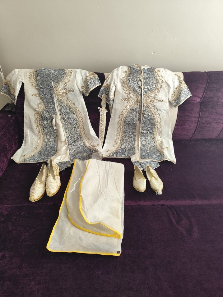 2 adet Nakışlı Beyaz Gri şehzade sitili sunnetlikler iki adet