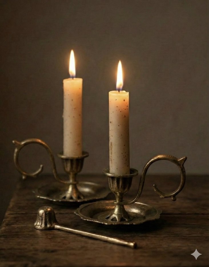 2 adet pirinç şamdan şinanay ve mum söndürme kaşığı
