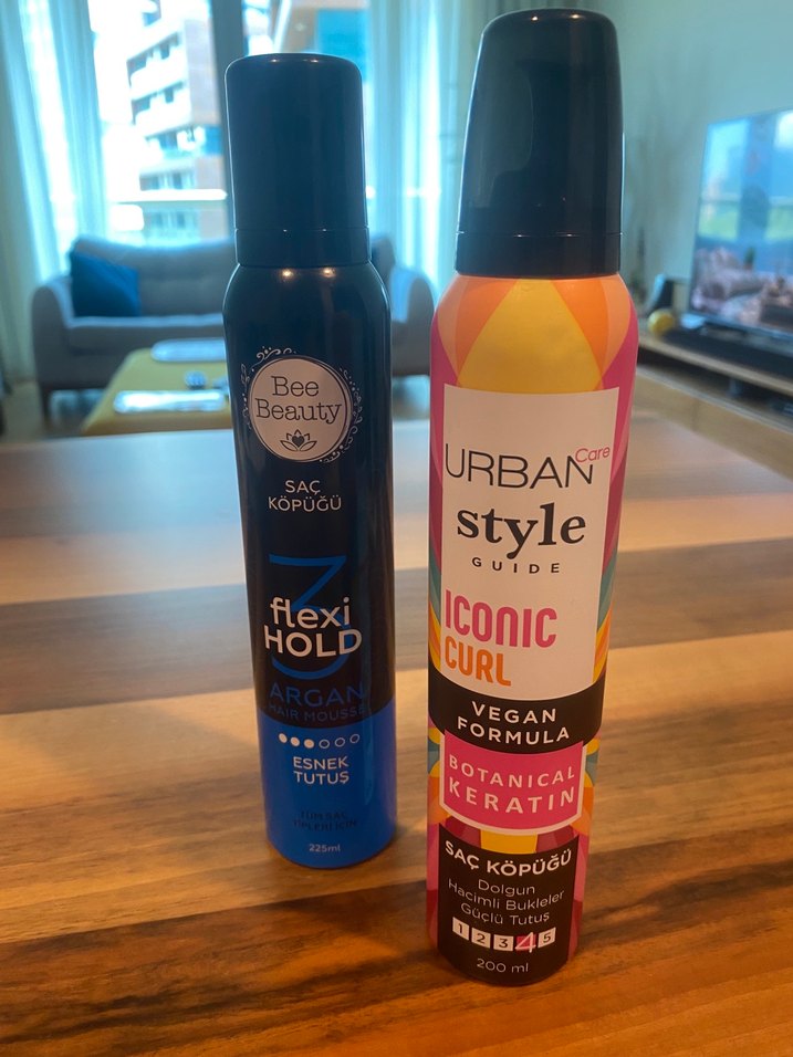 Saçma sürekli farklı şeyler denediğim için bunları da almışım ama sanırım sadece ikişer kez kullandım. %95 dolu gibi düşünebilirsiniz. Sıfır ürünleri daha pahalıya almaktansa bu şekilde bu ürünleri deneyebilirsiniz….Urban Iconic Curl 4 numara, güçlü tutuş. Bee Beauty 3 numara, esnek tutuş. Bee Beauty Flexi Hold argan yağlı esnek tutuş sağlar. Urban Style Iconic Curl vegan formüllü, botanik keratinli ve güçlü tutuşlu saç köpüğüdür.