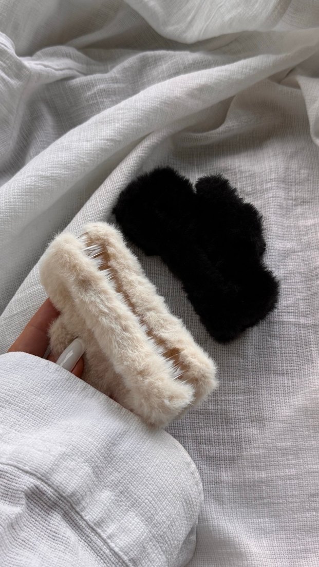 2 Adet Siyah-Bej Kadın Peluş Toka Mandal Etiketli