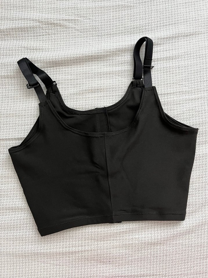 Ayarlanabilir askılı, siyah göğüs korsesi. Fitted kesim ve midi boy ile rahat destek sağlar. Düz, desensiz tasarımdadır.