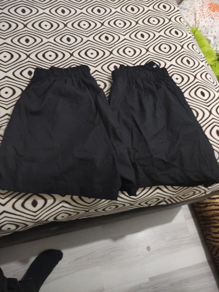 Yumuşak sentetik kumaştan siyah, bol kesim mini kadın şort, minimalist sokak stili için uygun.