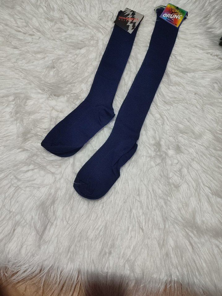 Düz ve koyu mavi renkte, Kadın çorap 2 Adet Uzun Ve Orta Uzunluk için rahat çoraplar. Günlük kullanım için uygundur.