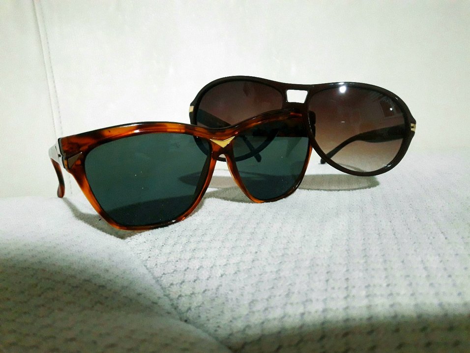 1. gözlük 80'lerden kalma çok kaliteli ve karizmatik vintage bir ürün, markası bilinmiyor. 2. gözlük Hawk marka, pek kullanılmamış. ikisinin toplam fiyatıdır.