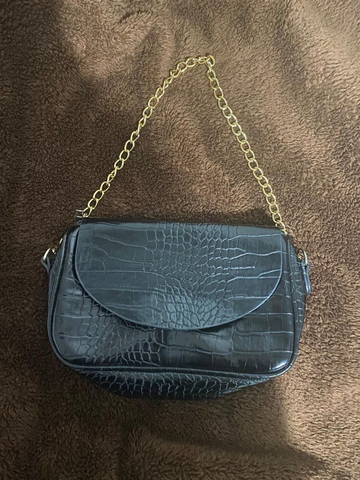 Siyah deri çanta, yılan derisi desenli dokusu ve altın zincir askısıyla klasik zarafet ve gotik Paris tarzını bir araya getiriyor.