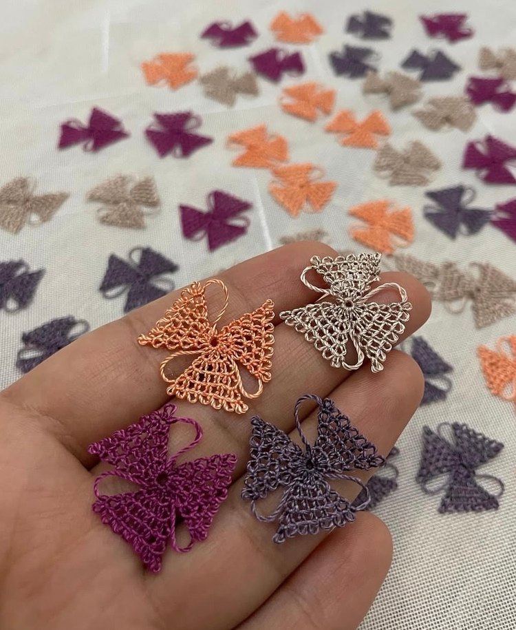 El yapımı iğne işi bohem tarzda kelebek motifli süsler, çeşitli renklerde, dekorasyon veya el işi için uygun.