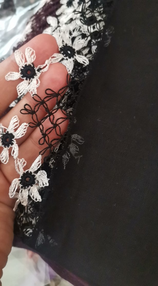Dantel çiçek desenli siyah kadın baş örtüsü , tekstil kumaştan olup gotik ve bohem tarzları yansıtır. hazır yapılmış iğne oyası 2 taraflıdır