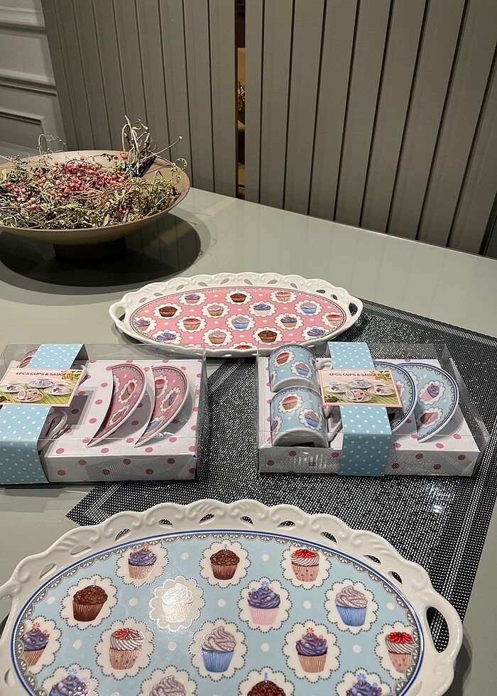 Almadan önce lütfen ilan açtırın pembe ya da mavi renk olarak! 2 kişilik cup cake türk kahvesi fincanı kutulu ve takım tepsisi de var