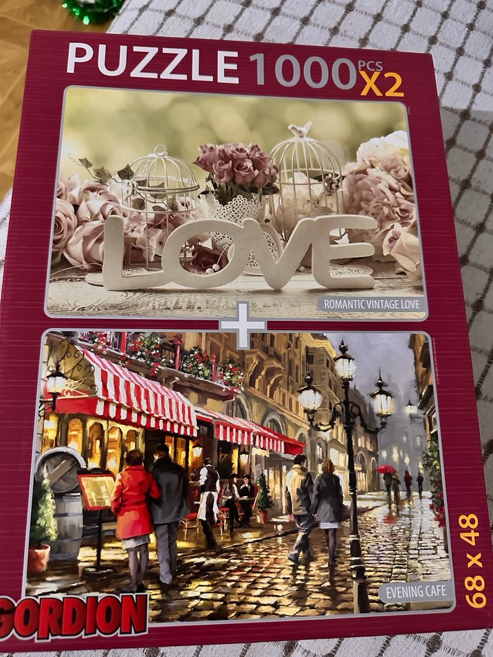 1000+1000 #parça #puzzle Romantik vintage ve akşam kafesi temalı, 2 adet 1000 parçalık puzzle seti. Her biri 68x48 cm boyutunda, açık bordo renkli kutuda. Herhangi bir deformasyon yoktur kullanılmadı #iadeyok