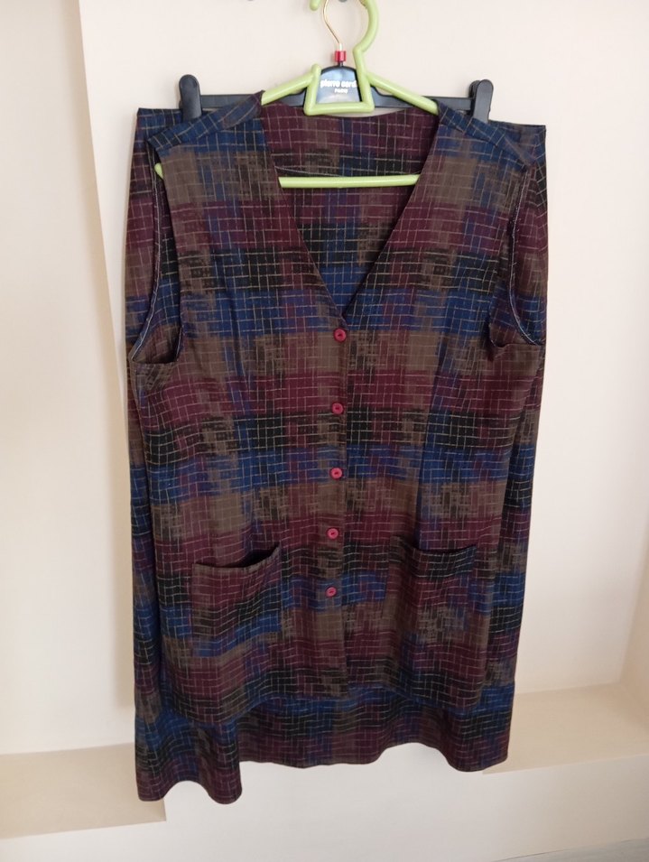 Düğmeli, batik desenli, kolsuz kadın yeleği ve etek.Sentetik kumaştan, gündelik kullanıma uygun cep detaylı.Özel dikimdir,kumaşı kendim alıp diktirdim kalitesi noktasında şüpheniz olmasın ayrıca bir kere giyildi ihtiyaç fazlası olduğu için satıyorum.Takım olarak satıyorum.Takım içeriği bir düğmeli yelek ve etekten oluşmaktadır.Beden ölçüleri şu şekildedir:Yeleğin boyu 80 cm,iki koltuk arası 60 cm,bel ölçüsü ise 50 cm dir.Etek yüksek beldir ve Eteğin boyu 95 cm,belki ölçüsü 50 cm,basen ölçüsü 60 cm dir.