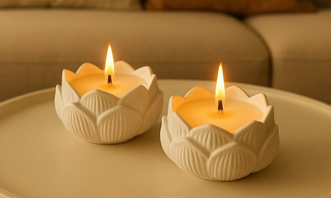 2 Li Beyaz Lotus Tasarımlı Mum Seti