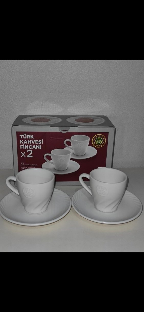 2'li Beyaz Türk Kahvesi Fincanı Seti