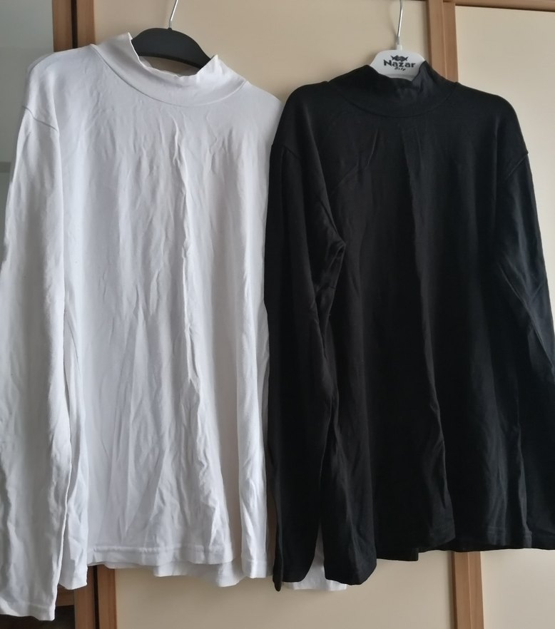 Beyaz olan 1-2 kez giyilmiştir. 2. Fotoğrafta görüldüğü gibi çok hafif bir tüylenmesi var. Ama giyilmeyecek gibi değil. Siyah hiç giyilmemiştir. S/M bedendir. Ölçüler fotoğrafta eklidir.