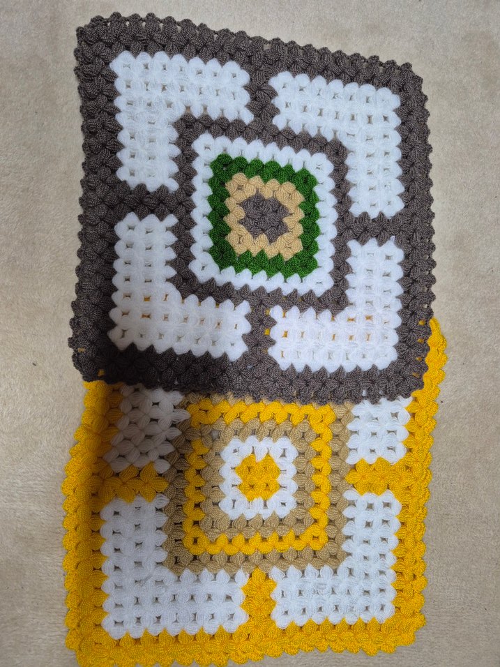 Gri, beyaz, yeşil, sarı ve bej tonlarında çok renkli örgü banyo süngerleri. Yumuşak ve dokuludur, nazik temizlik sağlar.