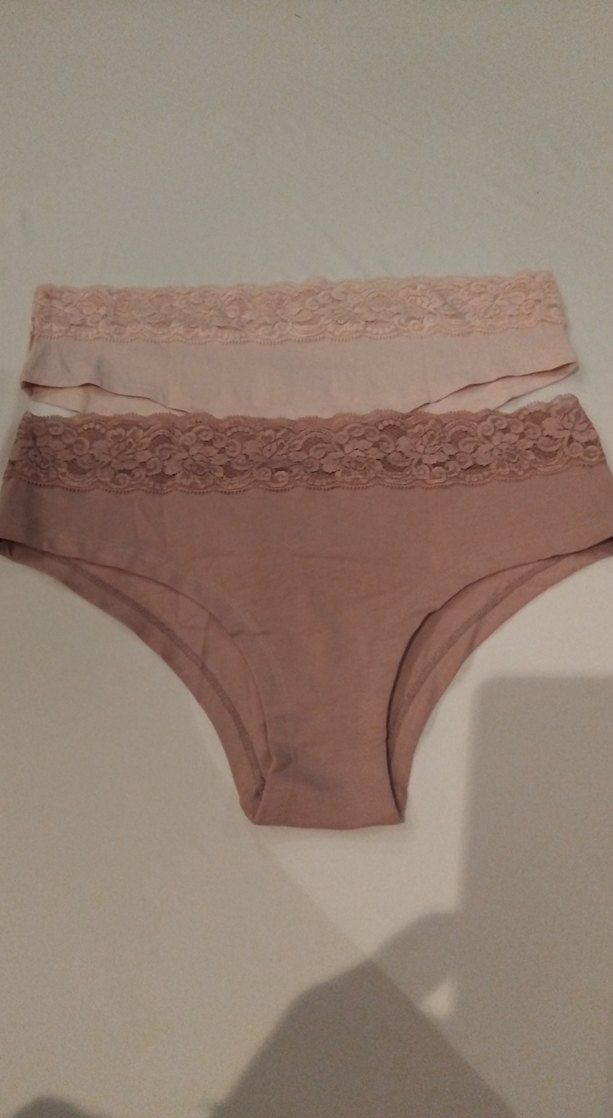L Beden İki adet pastel bej mini kadın külot, dantel detaylı ve rahat bir tasarıma sahiptir hijyen nedeniyle iade kabul olmamaktır