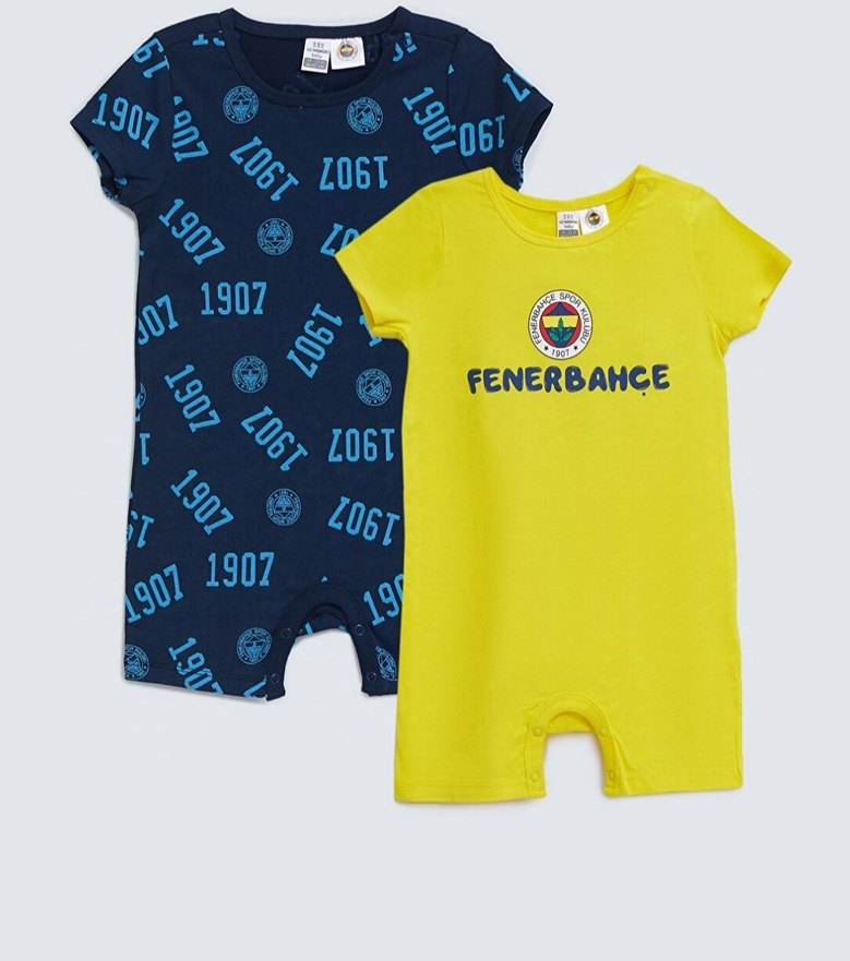2 li Fenerbahçe Tulum Lacivert Baskılı Bebek Kısa Kollu Tulum
