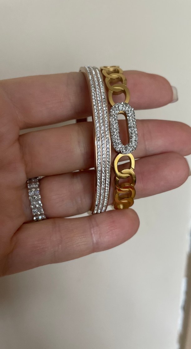 Parlak altın zincir detaylı bileklik, çağdaş yılan deseni ve ışıltılı süslemelerle klasik zarafeti bir tayansıtıyor. ✨bir tane taşı düşmüştür
