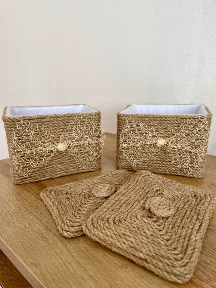 Doğal dokulu, hasır sepetler dolap içi düzenleyici 2li sepet marka temsilidir