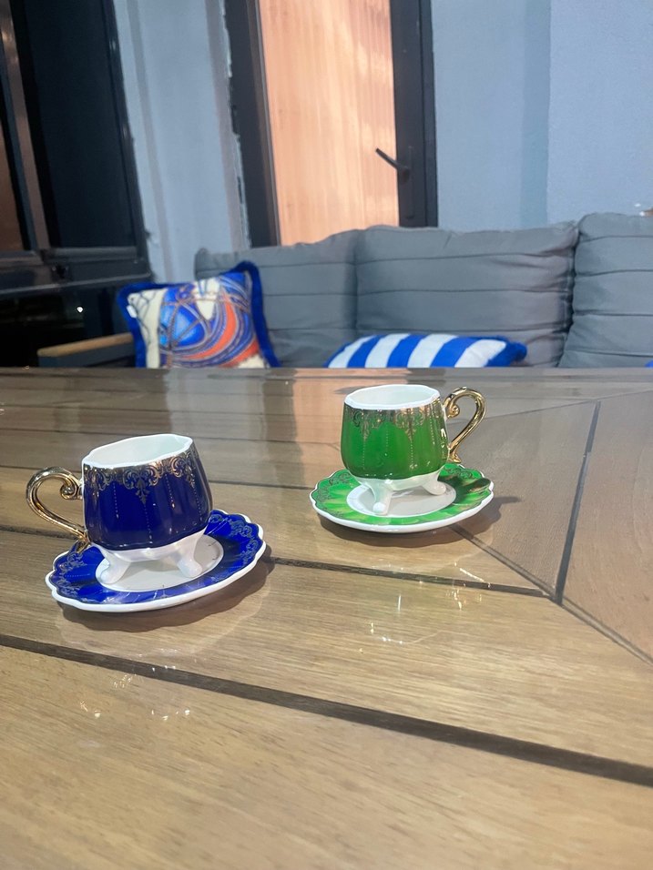 koyu Mavi yeşil Porselen Kahve Fincanı ve Tabağı 4 parça