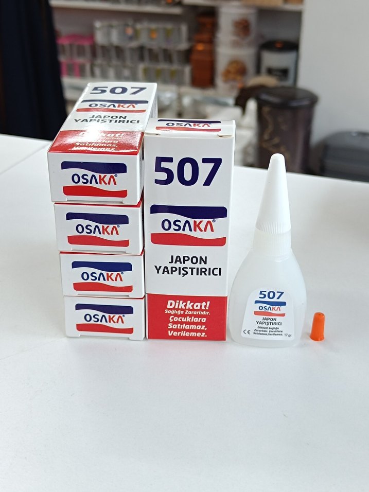 Osaka 507 Japon yapıştırıcı beyaz renkte, renkli ambalajda sunulmaktadır. Hassas uygulama için küçük bir kapaklı uç içerir. Stoğu mevcuttur, dileyene istediği adette ilan açılır.