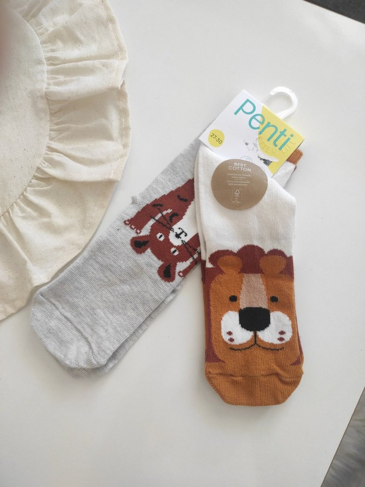 Penti markalı, bir çift bej aslan ve bir çift gri ayı desenli kız çocuk çorabı seti. Rahat ve şık tasarıma sahiptir.