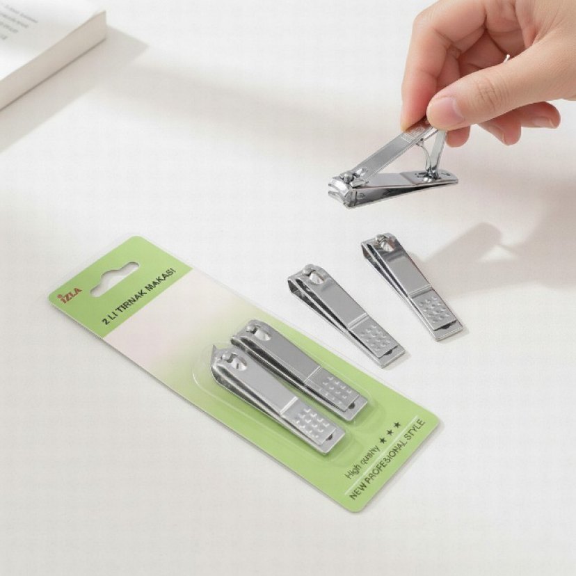 Yeşil kutusunda, dayanıklı metalden yapılmış 2 renkli tırnak makası seti. Manikür ve pedikür için uygundur.