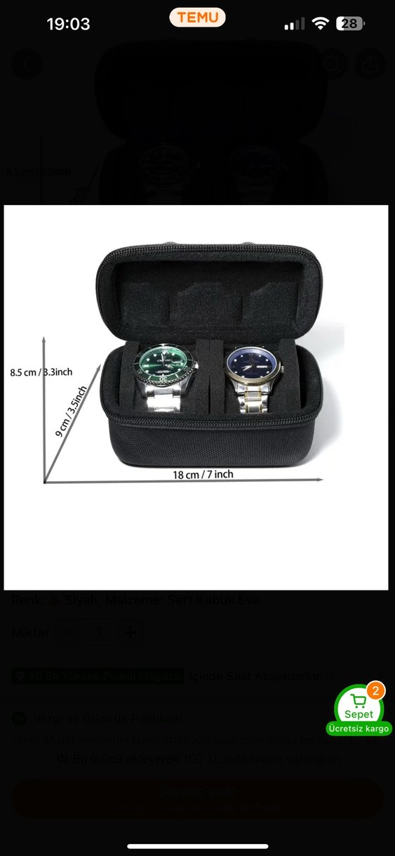 2 Li saat saklama ve koruma çantası
