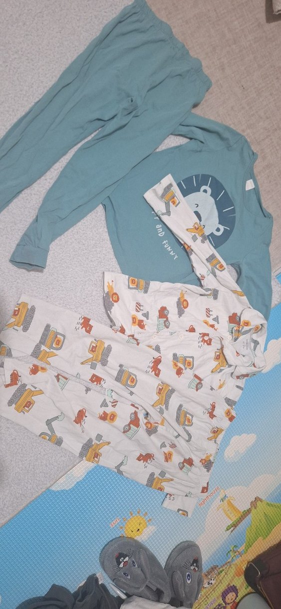 Erkek çocuklar için bol kesim, uzun kollu ve bisiklet yaka pijama takımı, pastel renklerde eğlenceli baskılar içerir. yikamaya bagli deformasyonu vardir. 4- 5 yas yaziyor fakat 3 yas icin uygundur