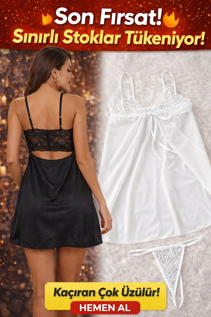 2'li Siyah Mini İnce Askılı Kadın Gecelik