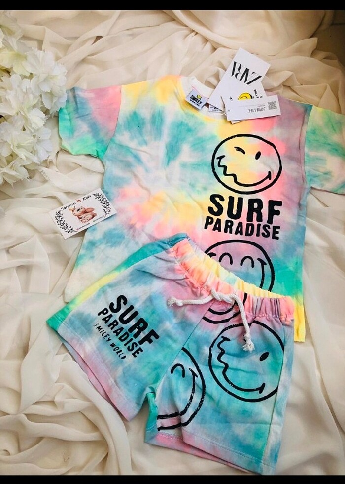 Ürün çekimleri bize aittir Zara Smile unisex 2 li şortlu takım 3-4 yaş 4-5 yaş 5-6 yaş bedenleri mevcuttur
