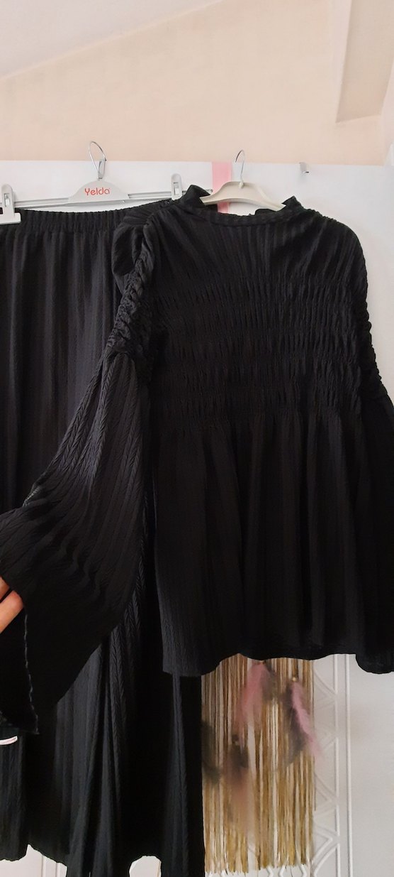 , yüksek yakalı ve uzun kolludur. Gevşek kesim ve gotik tarzda, modaya uygunlar için uygun. 40 42 44 bedene uygun