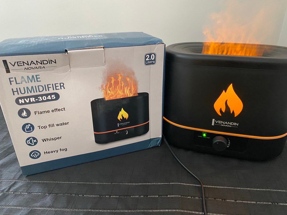 2 litrelik kapasiteye sahip siyah hava temizleyici ve nemlendirici, alev efekti ile dikkat çeker. Kolay kontrol düğmeleri bulunur. Gece lambası diye de kullanabilirsiniz. 2 litre su haznesiyle iki de bir su doldurmakla uğraşmanıza gerek yok. Ürün sıfır hiç kullanılmamıştır. Sadece çalışıyor mu diye denendi