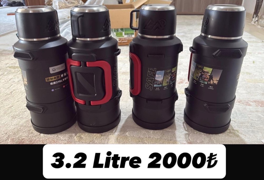 2 litrelik kapasiteye sahip siyah termos şişeler, sağlam saplar ve güvenli kapaklarla taşıma ve yalıtım sağlar. İçecekleri sıcak veya soğuk tutar.