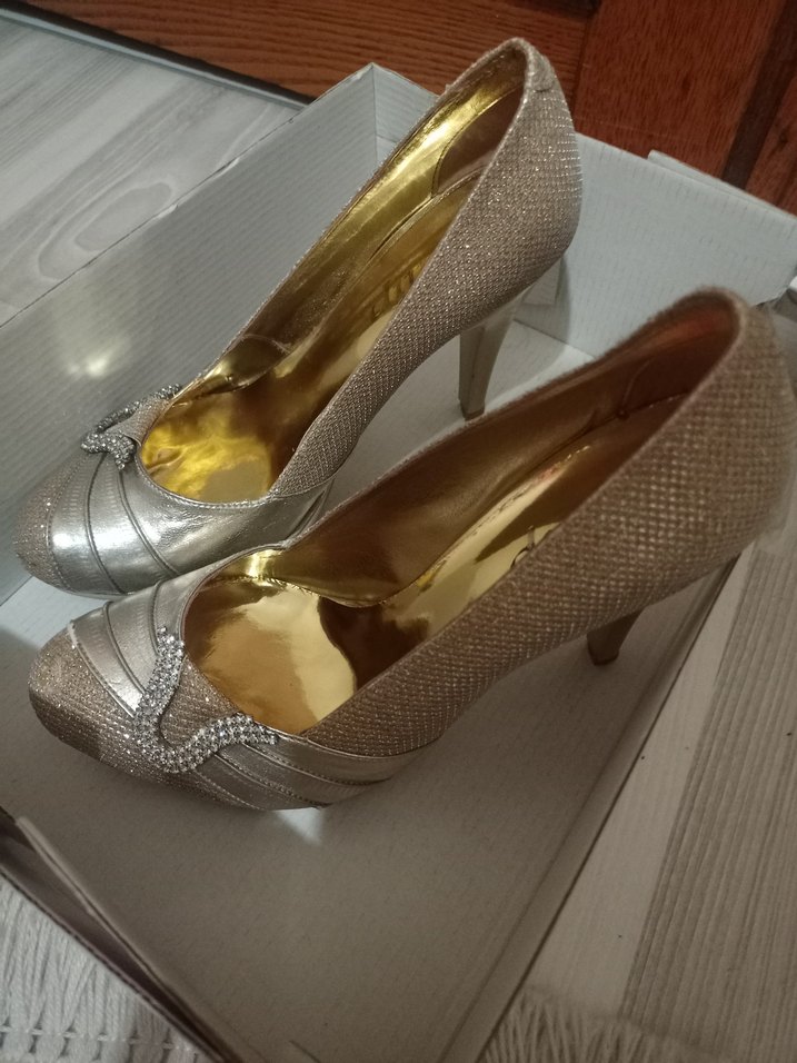 2 sefer giyildi. şık simli ve topuklu ayakkabı